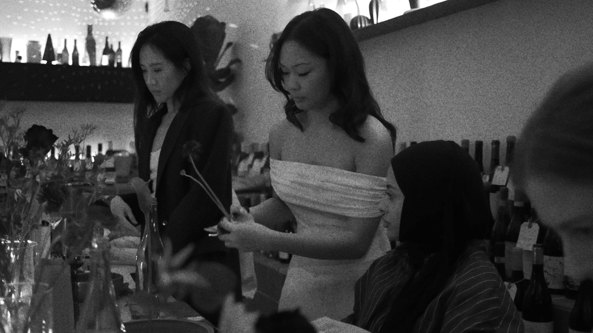 Her approach to Japanese flower arranging honors the principles of ikebana: negative space, asymmetry, and the deliberate placement of each element. Unlike Western floral design that emphasizes abundance, ikebana asks different questions. What is this vessel asking for? What does this season offer? Where does negative space want to live? "It was never about arranging flowers," she explains. "It was about arranging myself." That philosophy defines everything she creates, from custom installations for brands seeking mindful aesthetics to corporate wellness workshops where teams from tech and finance learn to slow down and practice intentional decision-making through flowers. Her intimate Toronto workshops guide participants through ikebana's history, intention-setting practices, and hands-on creation with seasonal botanicals.